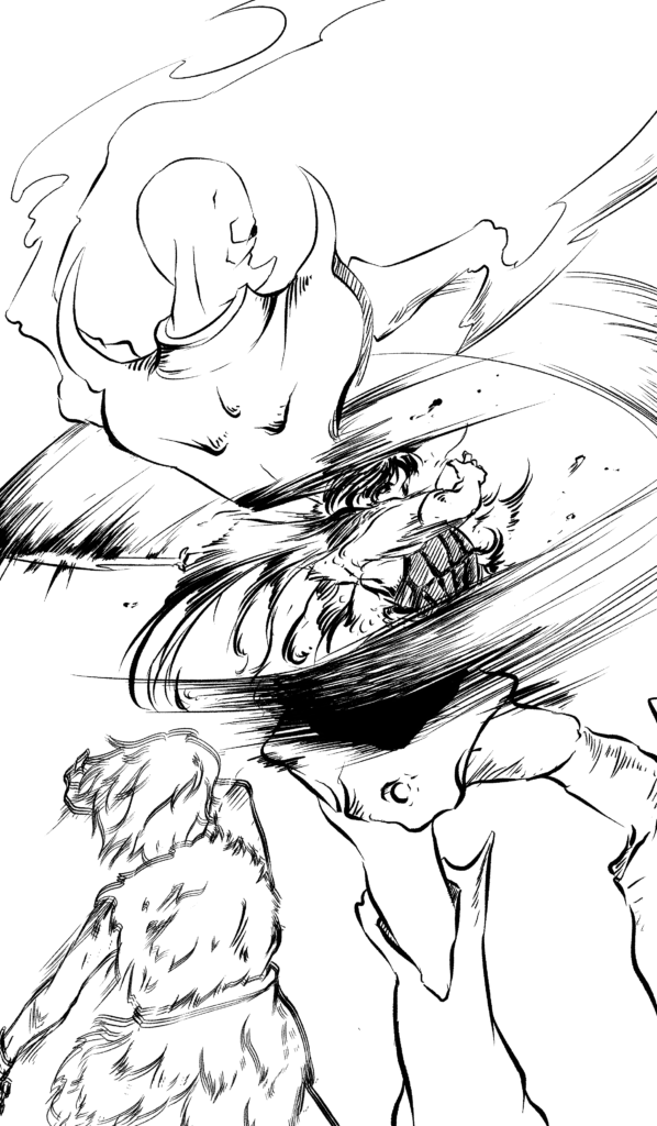 “We just need to outrun…” Before Thorag could finish his sentence, Cenric noticed a massive hole that had opened up in Thorag’s chest as one of the creatures closed in. With a swift strike of its bladed arms, it bisected the old man in half, his upper torso falling to the ground and his lower torso dropping to the ground.