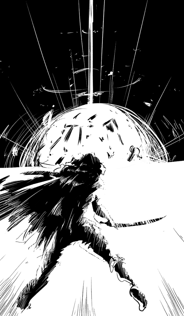 As he continued running, the northern gate was only a few hundred meters away and quickly coming into view. However, as he looked down, he noticed his shadow was growing larger. Turning his head around, he saw the palace starting to light up like a bonfire, with arcane energy bursting its way through the stone that composed its structure. The monster then began to turn, with the blue and red lights emanating from it now focusing on the palace. The creature’s full form was no longer hidden beneath the tons of sand rubble it had tunnelled its way up from and was now on full display. It was a mass of liquid metal and pulsating flesh that was long, almost insect-like. It resembled a chrysalis from a butterfly or moth. but with three massive legs and what looked like stained glass windows and ports for cannons in the front. However, he couldn’t stay idle to admire this horrifying spectacle before him. Tharos could feel it – the reactor was about to blow. The place began to erupt like a volcano, a stream of magical energy gushed forth with the sound of thunderous crashes that reverberated throughout the city. The area surrounding the palace started to crumble as the entire area, including the monster, was quickly consumed by a blinding light that arced out. Tharos couldn’t react fast enough as his vision was replaced by nothing but a bright white light that stung his eyes. All he could hear was a ringing in his ears as he and the comatose Cenric were then flung forward at blinding speed. Tharos tried to maintain his bearings and keep a hold of Cenric, but he couldn’t. He felt himself slipping in and out of consciousness until everything went dark, with nothing but pure silence.